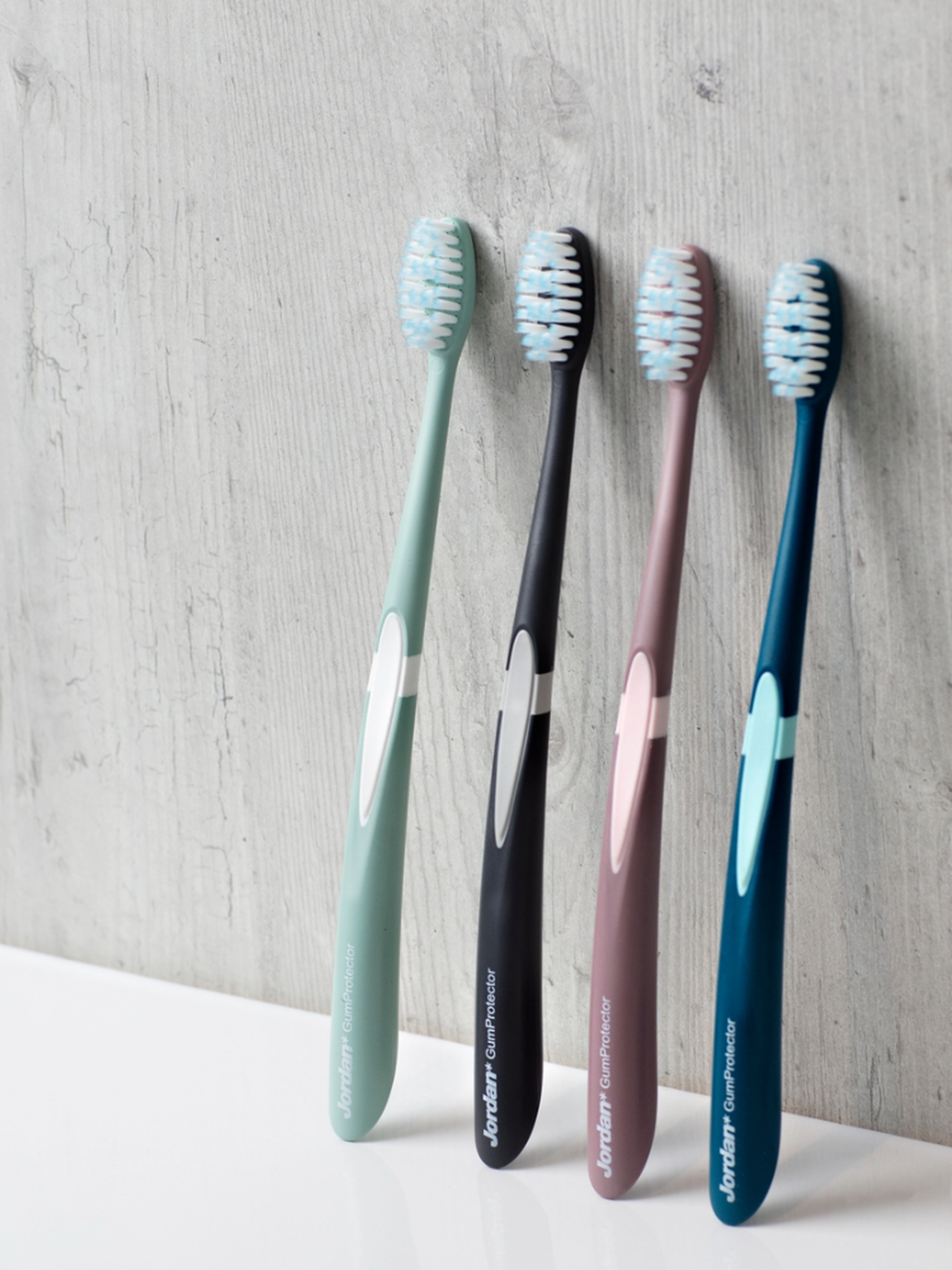 Soft rubber bristles glide gently between teeth, massaging gums and removing plaque: