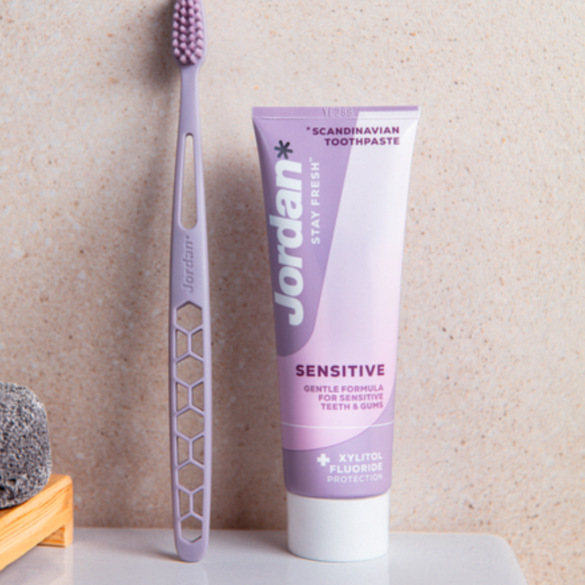 Jordan Sensitive contains a gentle formula developed for sensitive teeth and gums. The toothpaste contains both xylitol and fluoride for caries protection. Clinically documented sensitivity relief when used twice a day. Developed and produced in Scandinavia.